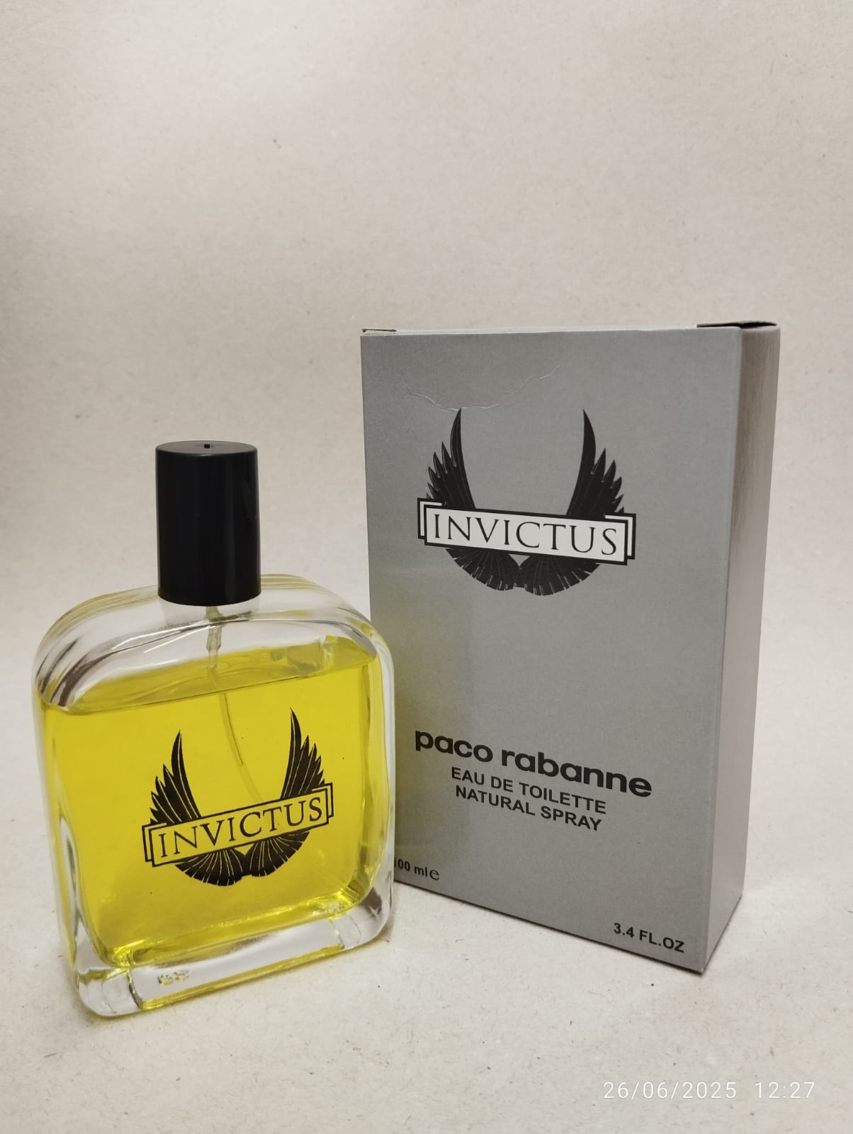 “Invictus” significa “invencível” em latim. A fragrância foi criada para evocar a imagem de um herói moderno, vitorioso e desejado. O frasco tem o formato de um troféu, reforçando a ideia de conquista e glória.